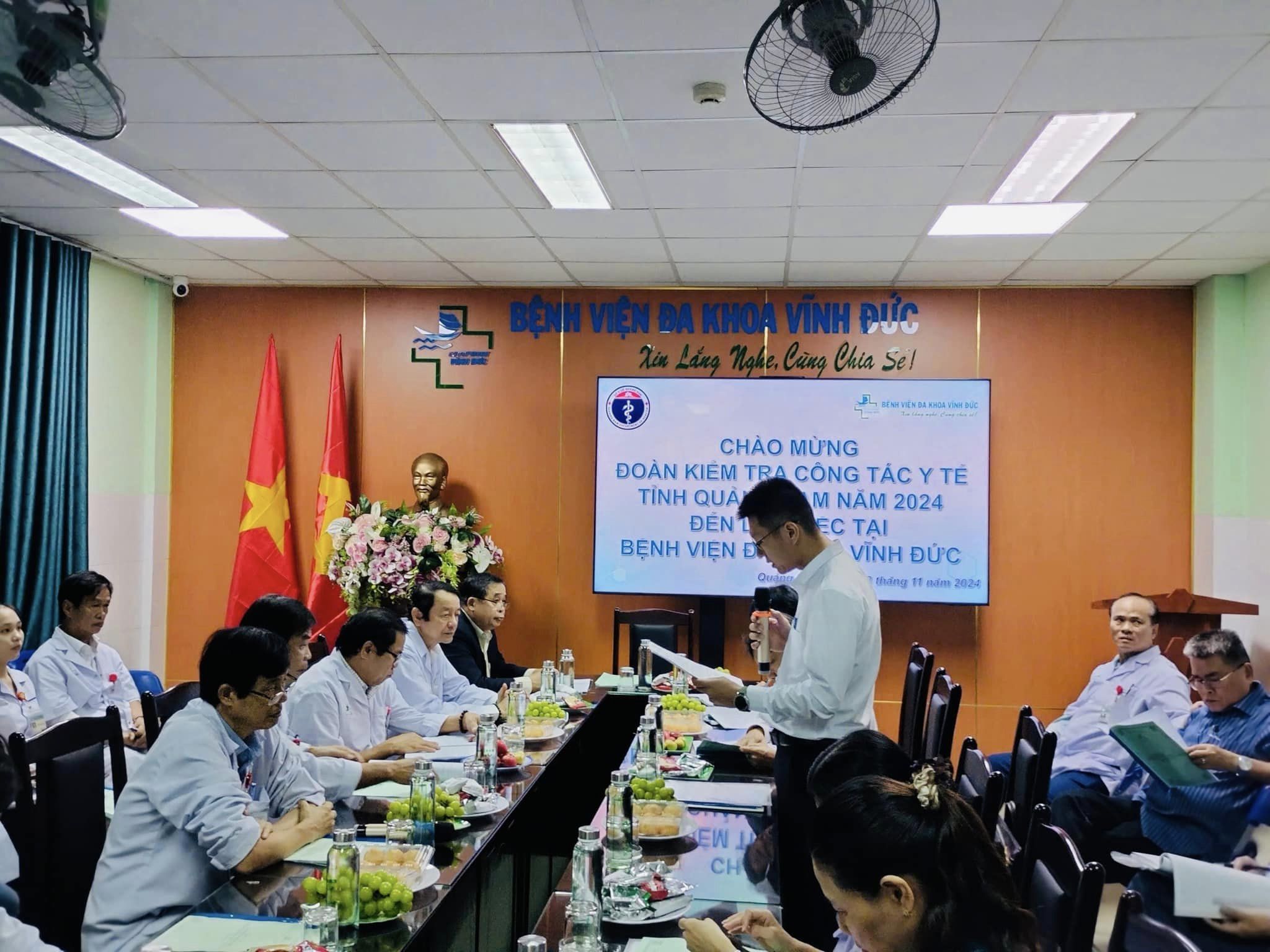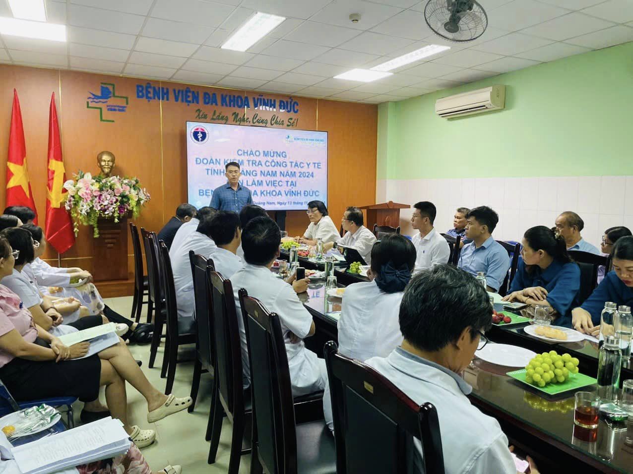 Sáng ngày 13/11/2024, Bệnh viện Đa khoa Vĩnh Đức đón tiếp Đoàn kiểm tra Sở Y tế Quảng Nam về kiểm tra – đánh giá chất lượng bệnh viện năm 2024. Đón tiếp Đoàn có sự tham gia của Ban lãnh đạo cùng đội ngũ bác sỹ và nhân viên bệnh viện.