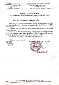 THÔNG BÁO V/v Mời thầu cạnh tranh xe cứu thương (Gia hạn thời gian chào thầu)