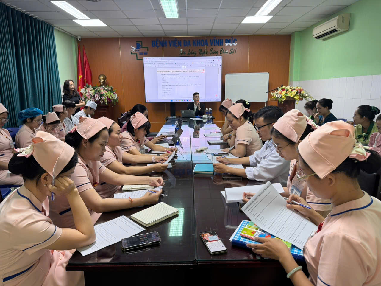 Nhằm nâng cao chất lượng nguồn nhân lực và xây dựng môi trường làm việc chuyên nghiệp, Bệnh viện Đa khoa Vĩnh Đức đã chính thức khai mạc khóa học “Tối ưu kỹ năng – Tối đa hiệu suất”, thuộc chương trình đào tạo nội bộ năm 2026 dành cho đội ngũ cán bộ nhân viên y tế.