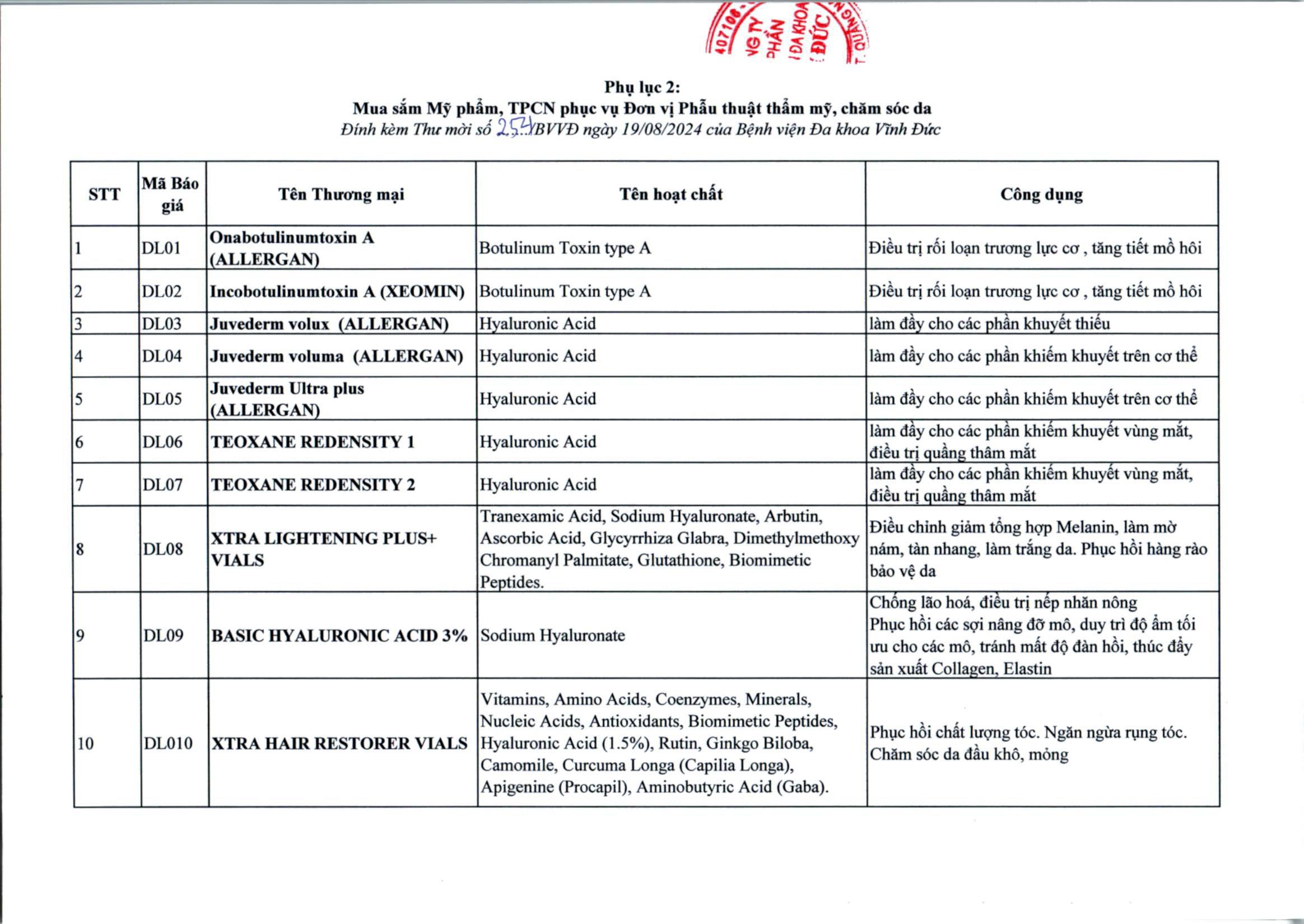 THÔNG TIN - THÔNG BÁOThông báo 254/BVVĐ ngày 19/08/2024. V/v Cung cấp báo giá Thuốc và TPCN liên quan đến da liễu Đăng vào 20 Tháng 8, 2024 bởi Nguyễn Thị Kim Huyền Thông báo 253/BVVĐ ngày 19/08/2024. V/v Cung cấp báo giá chế phẩm y học cổ truyền Thông báo 255/BVVĐ ngày 19/08/2024. V/v Cung cấp báo giá thuốc và TPCN khác